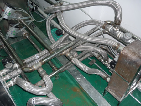 蒸發(fā)器:臺(tái)灣高力品牌板式換熱器,比普通的管殼式換熱器和水箱式換熱器制冷量更大,消耗功率反而更低,使用壽命長(zhǎng)